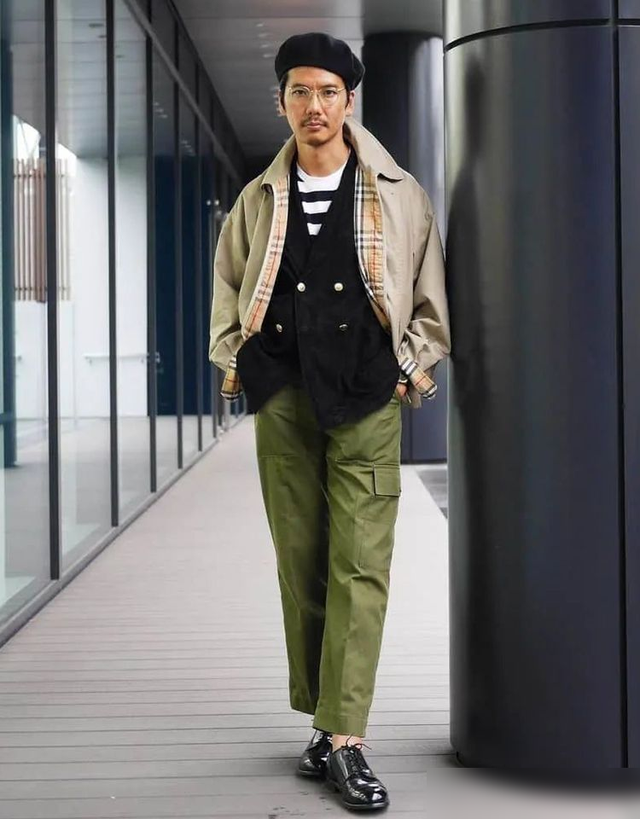 实际上,日本男人对待清新养眼自然色系也是一样大胆,不论现代绿色还是经典卡其色,日本男人都能把它们搭配出不同层次感和整体效果。